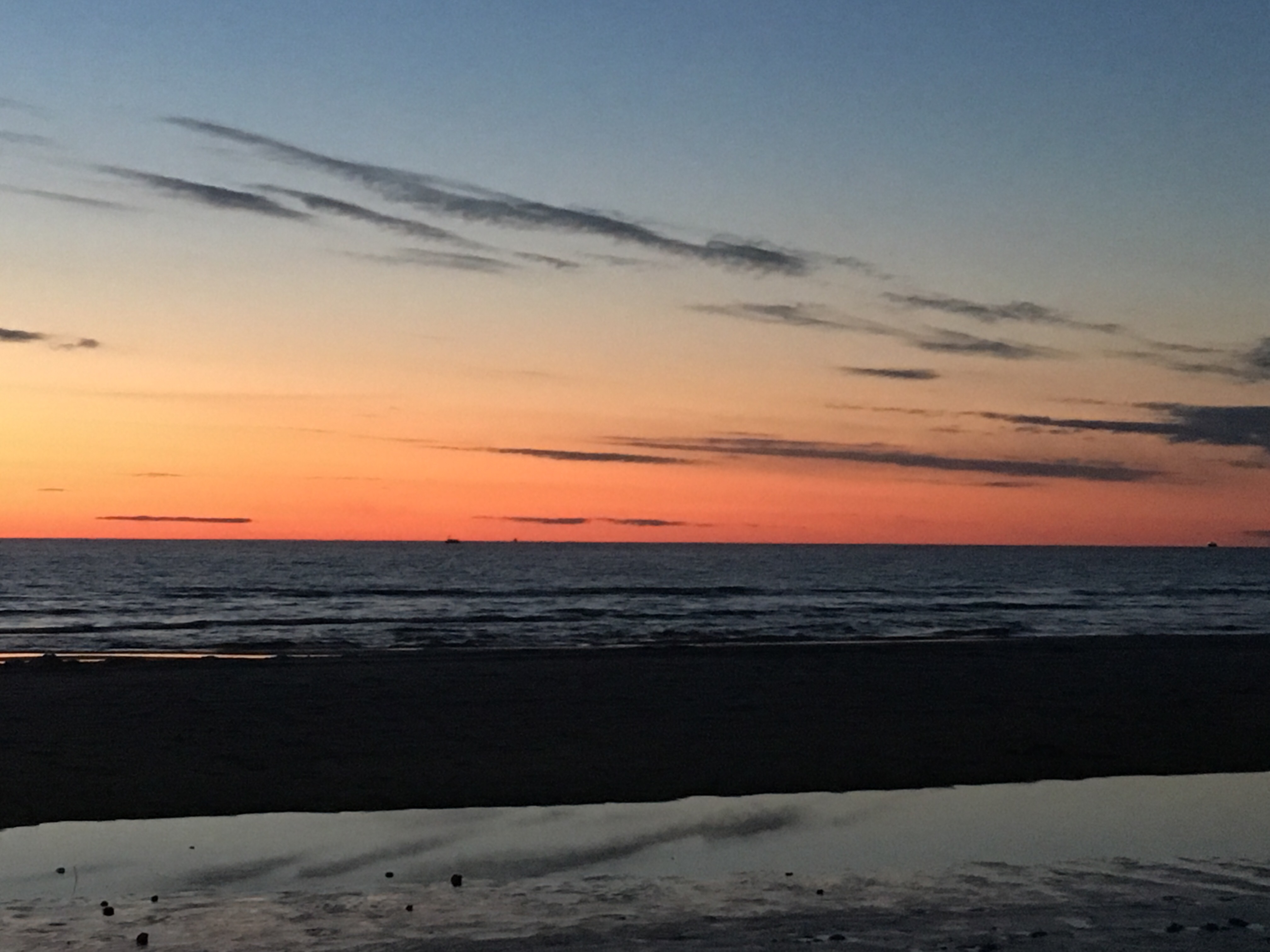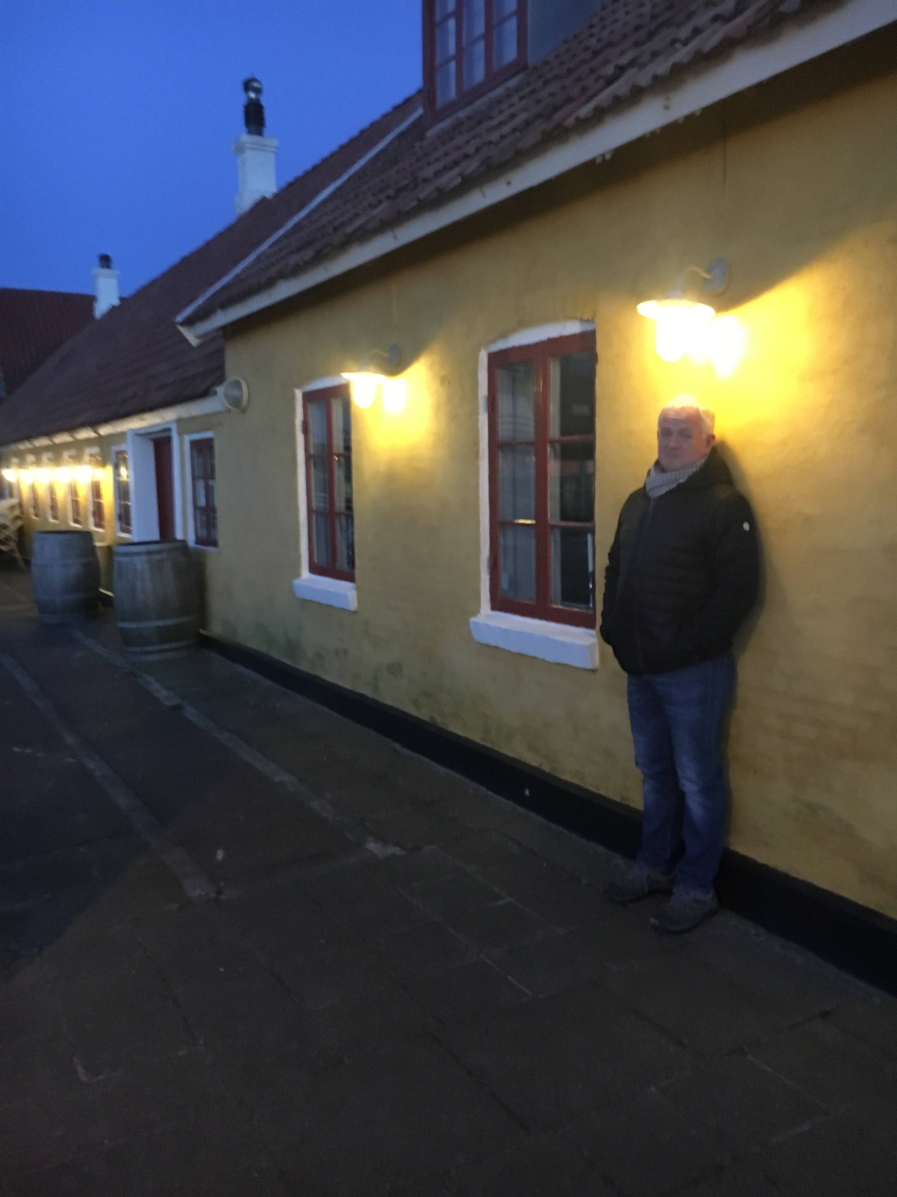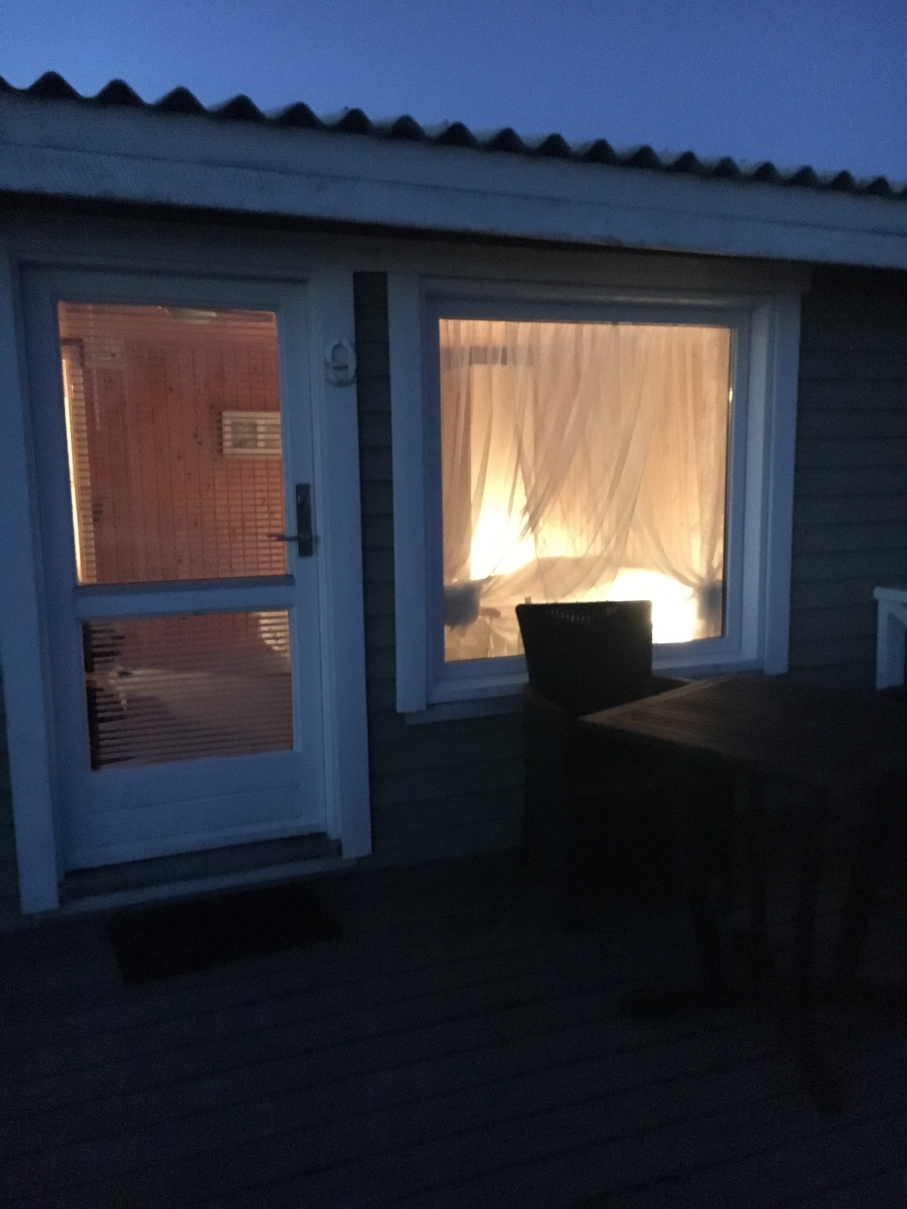 Going to bed in our little chalet on the beach. Lucky it’s still there, as Mr.Jones left the little panel heater on while we were out this evening. It was positioned under the window, right under the net curtains. The temperature has dropped to 0 degrees outside, and we realise we are not quite dressed for the weather. But the sunset is to die for, and the bottle of red from the beach shop which cost 45 D.Kr is not bad at all, or maybe we are just gratefully cold. The coarse wind has whipped my face and turned it matching sunset red. Reflections of the day: We drove 600km today, only to end up on a beach that resembles the ones we have at home, Harlech Beach and Morfa Bychan. Mr.Jones tells me he finds it strangely comforting to observe peoples lives in another place, yet similar to our own at home. God nat fra den danske nord kyst a Nos da.