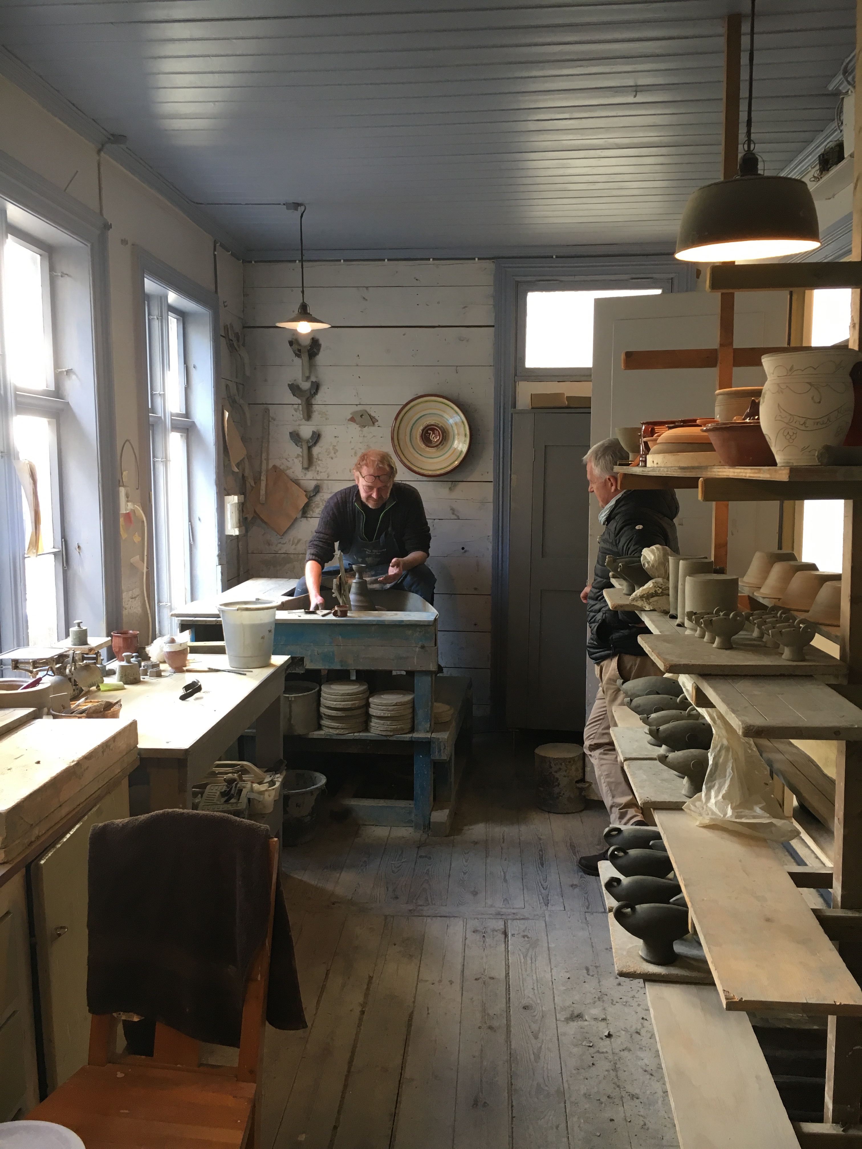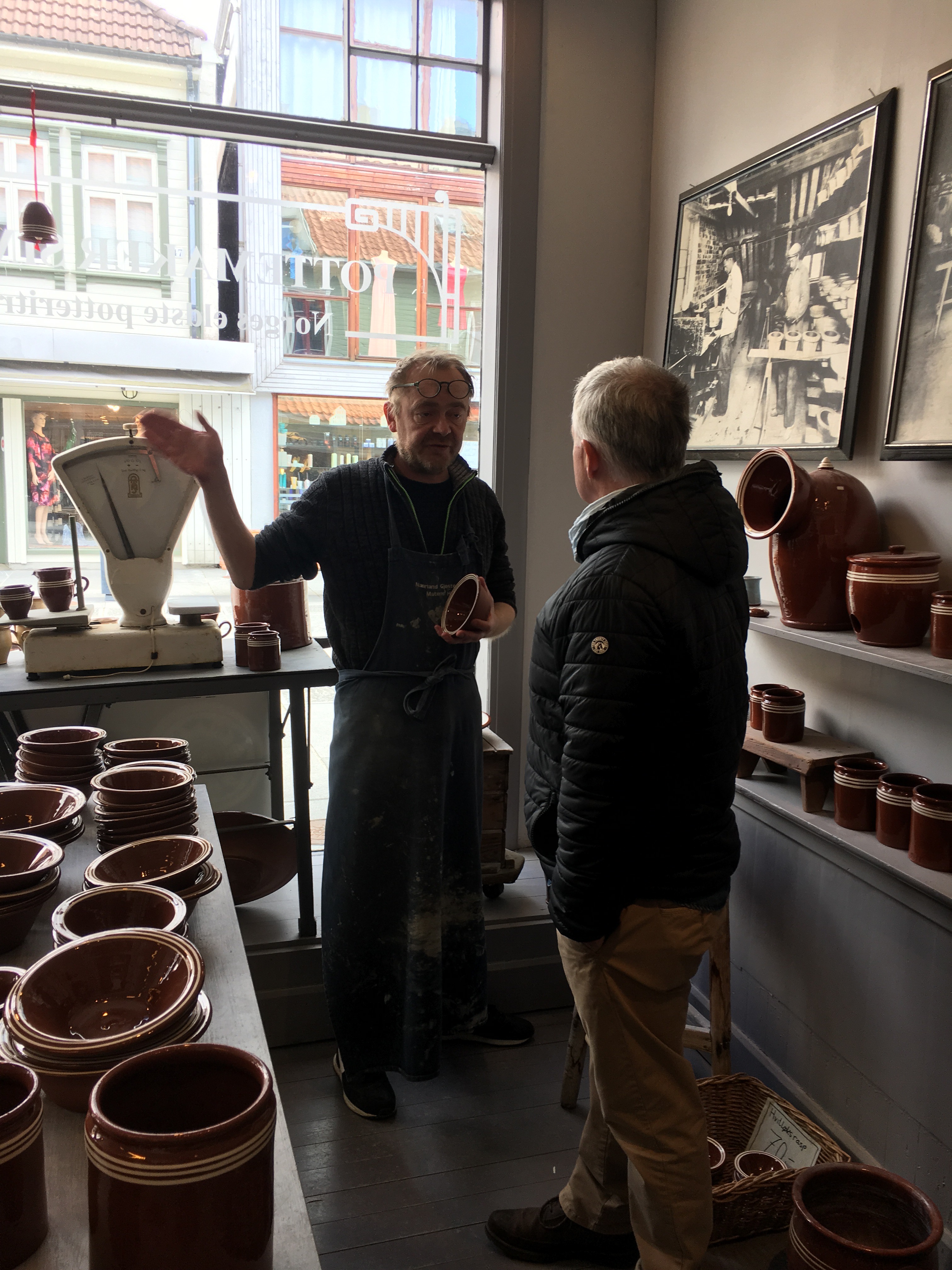 My hometown of Sandnes is literally built on pottery. Pottemaker Simonsen was telling us all about how 7 generations back, one of his forefathers had rowed alone (in 1822) at the age of only 14, all the way from the Hardangerfjord to Sandnes to become a pottery apprentice. He stayed in Sandnes and became a famous potter eventually. His father wanted the wooden boat back, so a friend of the 14 year old young apprentice had to row it all the way back to Hardanger. The boat can be found in the Hardanger museum today.