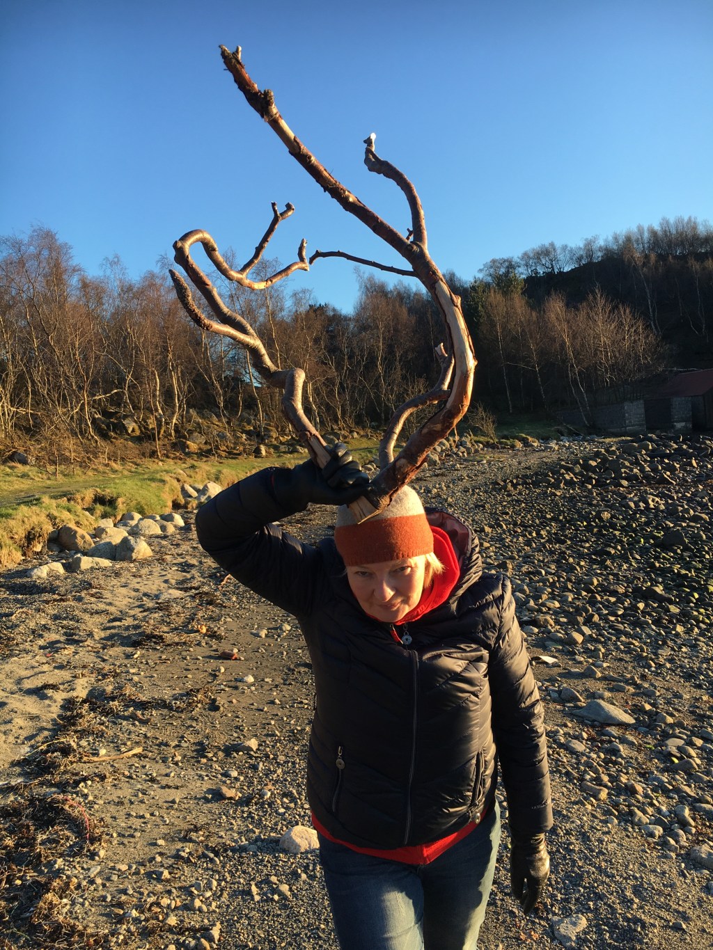 I remembered seeing those wonderful photographs of old Finnish women wearing strange things on their heads, so when we found this fantastic thing, branches that looked like antlers, I just couldn’t help myself. We have also seen quite a lot of deer on this trip. They are often grazing peacefully in a farmers field, but…